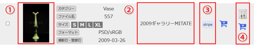 ③タグ ・・・写真についているタグ(付箋・荷札)(タグ検索/キーワード検索対象)。