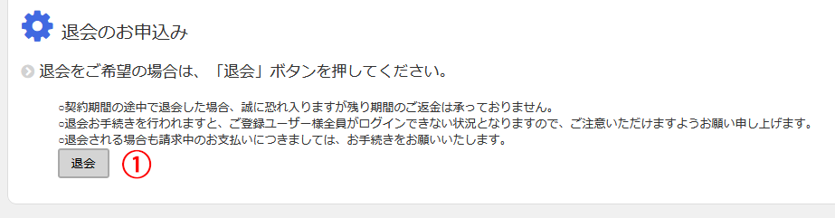 退会をご希望の場合は、①「退会」ボタンを押してください。